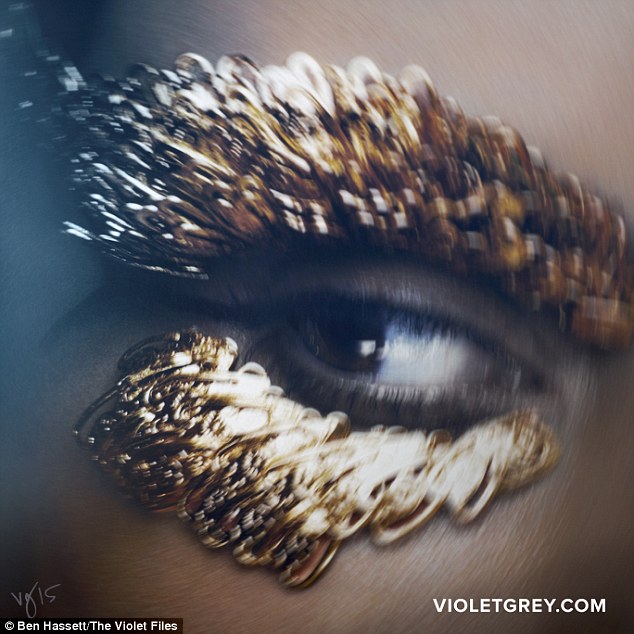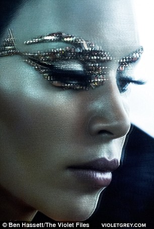 'Elizabeth Taylor's makeup in Cleopatra has been reacted countless times, but for Kim I wanted to create a version that has never been done before, a futuristic 3D version. I wanted to portray a luxurious decadence by using elements of ornate facial jewelry constructed into shapes that pay homage to Egyptian culture, and of course to the rich exotic character that Taylor played in this role,' she explained.