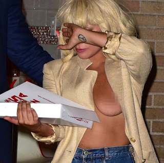 The incident happened when GaGa just got out from Amadeus Pizza restaurant. The "Bad Romance" hitmaker was strolling down the street braless in an unbuttoned khaki jacket.